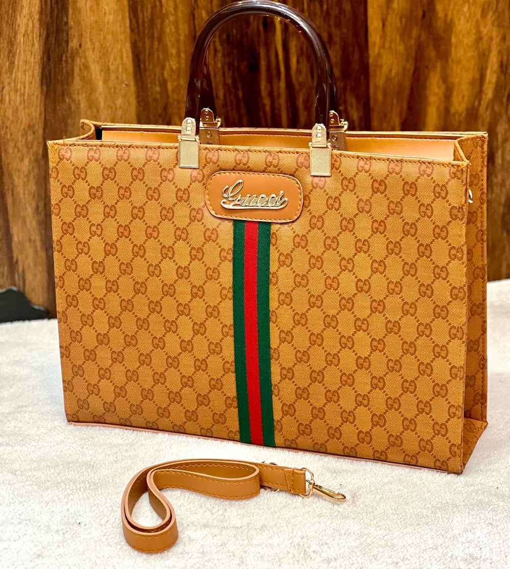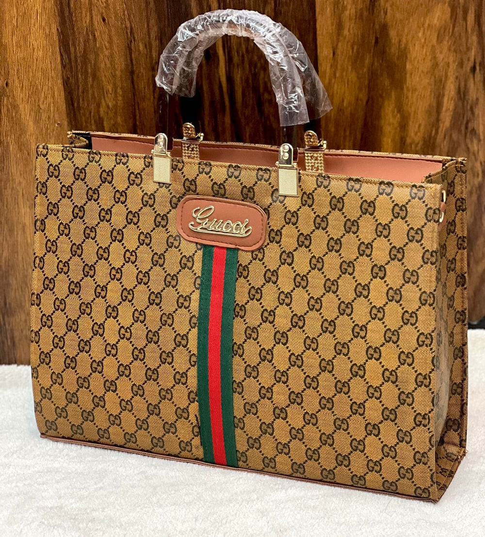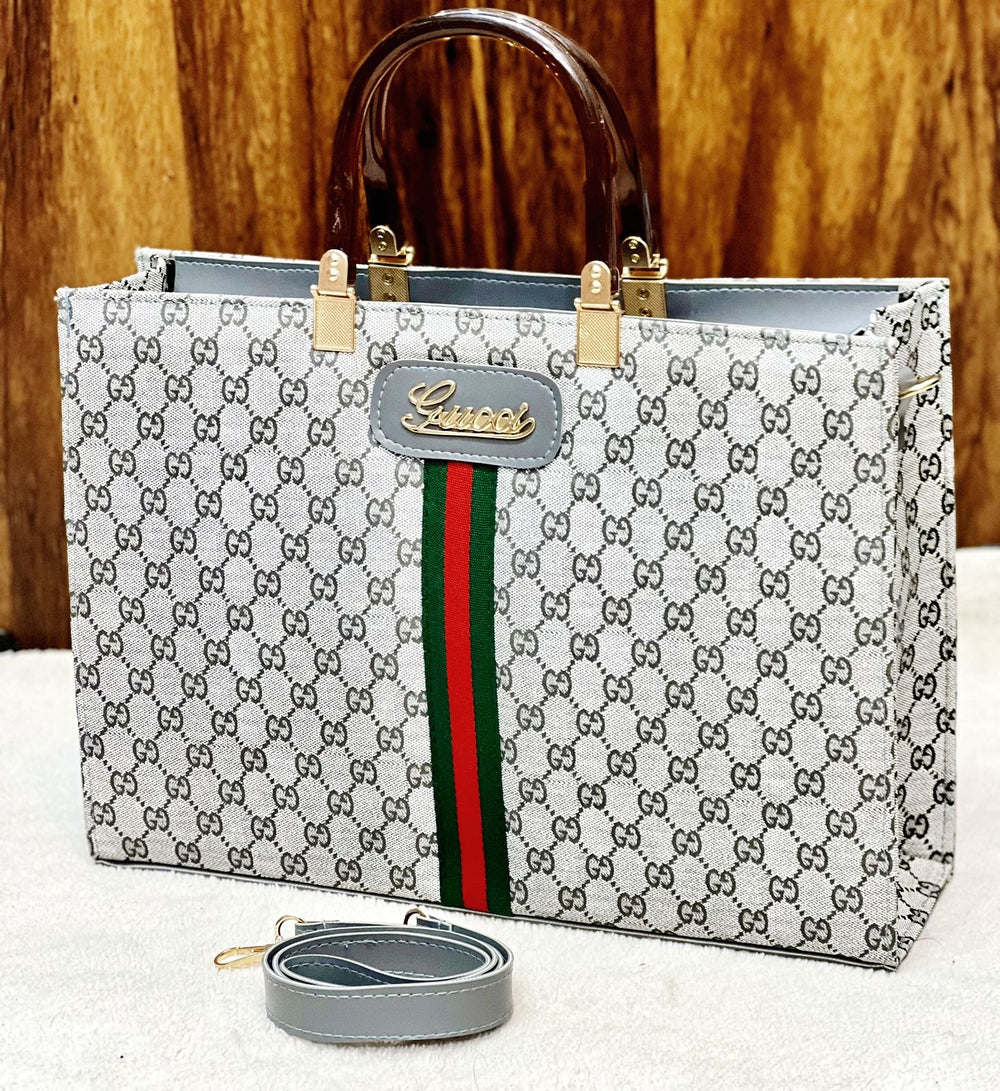 Introducing the Gucci Fashion Handbag, a stylish and functional accessory for the modern woman. Made by a renowned fashion brand, this handbag speaks of luxury and sophistication. With its elegant design and spacious interior, it is perfect for carrying all your essentials. Elevate your style with this Gucci handbag.